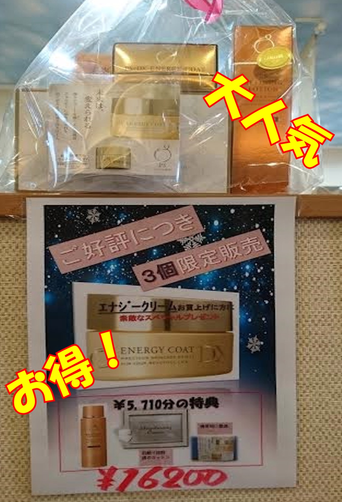 肌は変わる、変えられる!! 2017/02/02 透明感 ハリ 弾力 リフトアップすべて良くなっています。 実感してみてください。 オールインワン化粧品と同じように使えるエナジークリーム(16200円) 使ったらやめられない!! 一本で半年使えます 今なら16200円で4860円の化粧品がついてくる